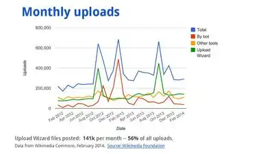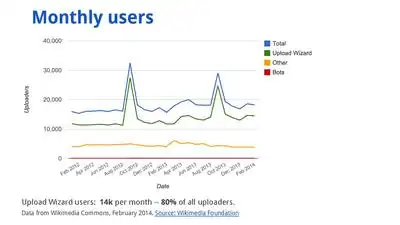 Here are upload metrics for Upload Wizard from February 2014: (1)