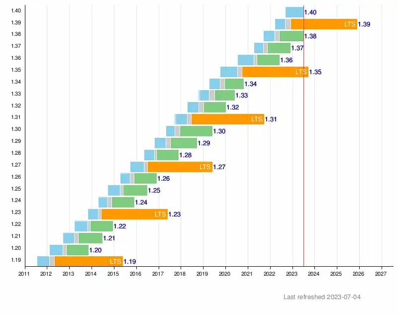 | 1.35.x (LTS) | legacy long-term support version | September 2023 | |
