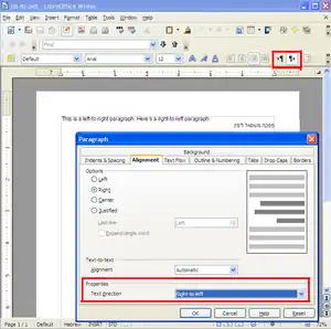 In other rich text editors: OpenDocument doesn't support this feature natively, but only through the use of control characters, such as RLM and RLE/PDF. Microsoft Word seems to try to support it by assuming the inline text direction according to the language of the current keyboard layout, which is rather intuitive and user-friendly, but it doesn't offer any other way to control it afterwards, which may be confusing.