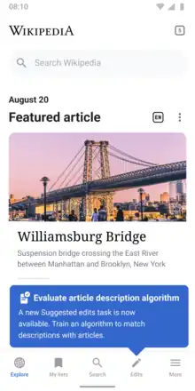 - Determine if suggestions made through the Descartes model increases the quality of article description additions and edits made using the Wikipedia Android app. To understand how the suggested article description changes user behavior, we will evaluate: