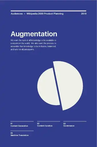 Augmentation for contribution activities is our path to closing these gaps. Augmentation refers to any technology that helps humans do their work, and wikis have been using augmentation almost since their beginnings: Rambot created 34,000 articles from Census data in 2002,[2] Twinkle has been automating repetitive tasks since 2007,[3] ClueBot has been reverting vandalism since 2011,[4] and the Content Translation tool has employed machine translation to help generate content since 2016. Over the next three to five years, human editors will need to increasingly wield augmentation tools, especially those that incorporate artificial intelligence, to create content, curate content, and maintain a safe environment on the wikis. Artificial intelligence will not replace human editors -- it will allow human editors to focus on the most impactful and fulfilling work, and, if used correctly, will open up more avenues for more contributors.[5]