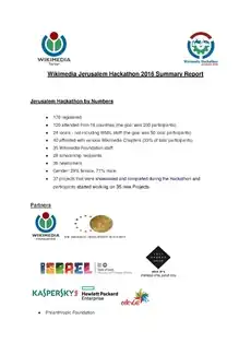 Wikimedia Hackathon is a major event that brings together more than 150 developers from all around the world to improve the technological infrastructure of Wikipedia, particularly the MediaWiki platform on which it is based, and the Wikimedia code development.