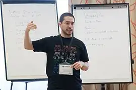 Analytics team at WMF, data, visualization, community backlogs and metrics, UI/UX. | I can help you with being a complete beginner to mediawiki development, or finding non-mediawiki core software that you might be interested in working on. Such as analytics, research, mobile apps, new greenfield wikidata UI rewrite, and other projects people are working on. Technology-wise I can help you with JS, SQL, python, big data tools, and deep analysis of mediawiki-related data. I know people in all corners of the movement, developers and otherwise, so I can introduce you to anyone you want to meet. | ||||
