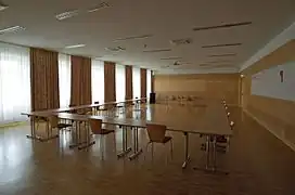 . One main hall, two conference rooms and several small workshop rooms are available to us, plus a nice yard. Accommodation will be on the upper floors and in an adjacent building.