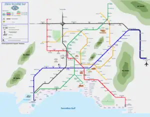 Four bus lines (X93, X95, X96, X97) connect directly to the Athens greater area.
