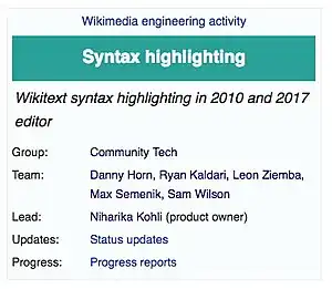 | progress = [[meta:Community Tech/Syntax highlighting|Progress reports]]