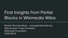 - By Aaron Halfaker: Along with quantitative research comes data and analysis code. In this presentation, Aaron will introduce you to 4 python libraries that capture code he uses on a regular basis to get his wiki research done. MediaWiki Utilities is a general data processing library that includes connectors for the API and MySQL databases as well as an XML dump parser and revert detection. Wiki-Class is a machine learning library that is designed to train, test and deploy automatic quality assessment class detection for Wikipedia articles. MediaWiki-OAuth provides a simple interface for performing an OAuth handshake with a MediaWiki installation (e.g. Wikipedia). Deltas is an experimental text difference detection library that implements cutting-edge research to track changes to Wikipedia articles and attribute authorship of content.