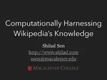 - By Morten Warncke-Wang: In this talk we look at article curation in Wikipedia through the lens of task suggestions and article quality. The first part of the talk presents SuggestBot, the Wikipedia article recommender. SuggestBot connects contributors with articles similar to those they previously edited. In the second part of the talk, we discuss Wikipedia article quality using “actionable” features, features that contributors can easily act upon to improve article quality. We will first discuss these features’ ability to predict article quality, before coming back to SuggestBot and show how these predictions and actionable features can be used to improve the suggestions.