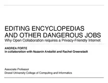 - By Nathan Matias: Nathan will share a series of research on gender diversity online and designs for collaborative content creation that foster learning and community. He will also demo a prototype for a system that could leverage open data to attract and support new Wikipedia contributors.