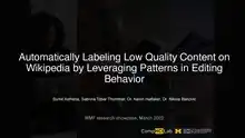 - Wikipedia Article Curation: Understanding Quality, Recommending Tasks
