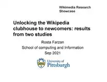 - ↑ Sneha Narayan, Jake Orlowitz, Jonathan Morgan, Benjamin Mako Hill, and Aaron Shaw. 2017. The Wikipedia Adventure: Field Evaluation of an Interactive Tutorial for New Users. In Proceedings of the 2017 ACM Conference on Computer Supported Cooperative Work and Social Computing (CSCW '17). ACM, New York, NY, USA, 1785-1799. DOI: https://doi.org/10.1145/2998181.2998307 PDF