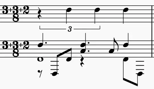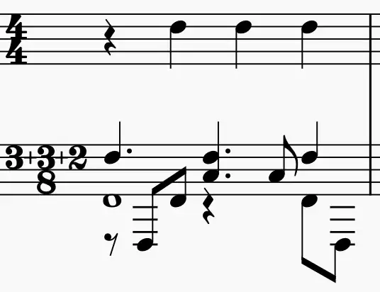Could it be that my time signature is wrong? The "stressed beats" of the song are not "four crotchets", but a 3+3+2/8 additive meter. Let's try this new time signature: