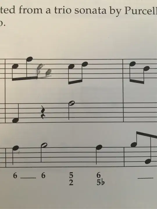 When we look at this from a standpoint of counterpoint, we realize that the C F stays the same between beats 3 and 4; we add in the chordal-seventh E♭, but otherwise the only pitch that changes is B♭. This tells us that the B♭ on beat 3 is actually a non-chord tone delaying the appearance of A, the true chord tone. This B♭ is thus a 2–3 suspension in the bass.