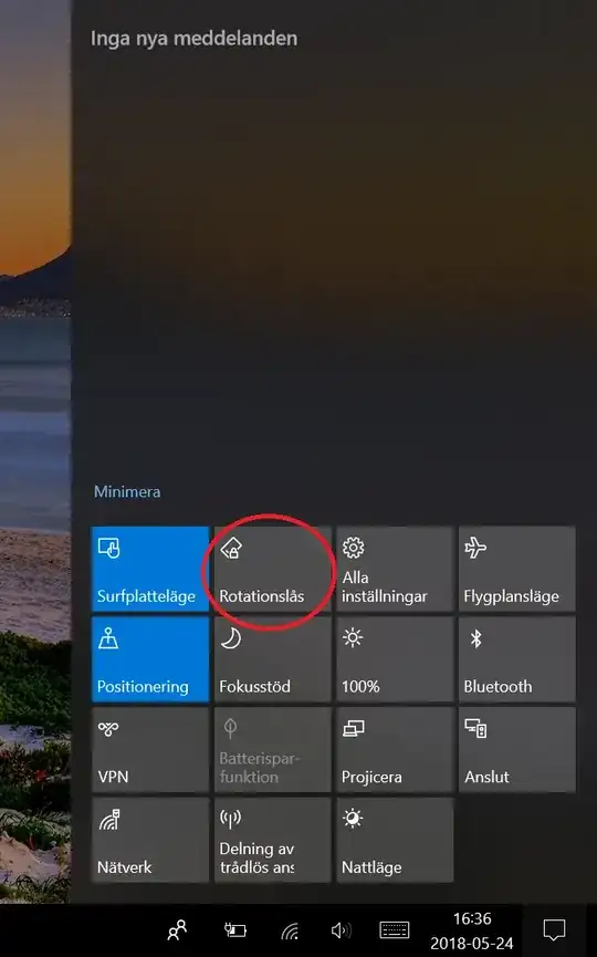 ("SurplattelÀge" means "tablet mode" and "rotationslÄs" means "rotation lock")