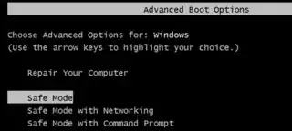 Windows "Safe mode" boot menu if the previous shutdown was not done properly