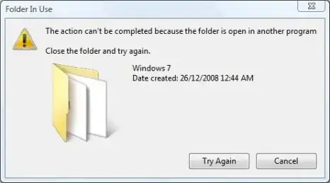 The action can't be completed because the folder is open in another program