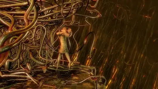 You can now even go ahead and predict macroblocks from macroblocks that have been previously encoded in the same image. This is called intra prediction. For example, a part of a grey wall was already encoded in the upper left corner of the frame, so we can use that macroblock in the same frame again, for example for the macroblock right next to it. We will just store the difference it had to the previous one and save data. This way, we don't have to encode two macroblocks that are very similar to each other.