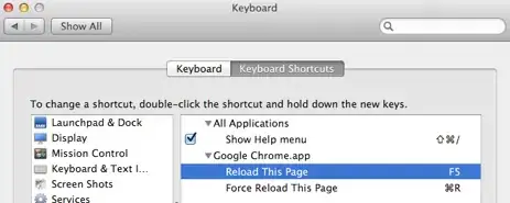 12To clarify steps: 1) Go to Preferences > Keyboard > Keyboard Shortcuts. 2) Select "Application Shortcuts" from the left menu. 3) Click "+". 4) Fill out the form like so: *Application* `Google Chrome`, *Menu Title* `Reload This Page`, *Keyboard Shortcut* `f5`. 5) Click "Add". – Jess Telford Jul 29 '13 at 16:03