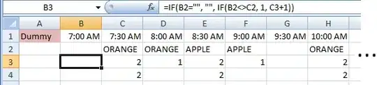 I was hoping the counting will stop if M7 has a different value. K7:L7 contains "orange" and M7:N7 has "apple". or the counting will stop if there's an empty cell in between, like U7:V7 contains "guava", and T7 is empty, then X7:Y7 again has "guava".