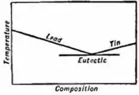 Fig. 6 gives the freezing-point diagram for alloys of lead and tin. We see in it exactly the features described above. The two sloping lines cutting at the eutectic point are the freezing-point curves of alloys that, when they begin to solidify, deposit crystals of lead and tin respectively. The horizontal line through the
