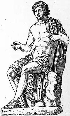 | Fig. 3.—Apollo Citharoedus, showing Cithara with box tail-pieces. |
