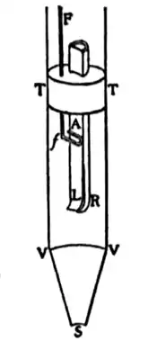 FREE REED VIBRATOR (Fr. anche libre, Ger. durchschlagende Zunge, Ital. ancia or lingua libera), in musical instruments, a thin metal tongue fixed at one end and vibrating freely either in surrounding space, as in the accordion and concertina, or enclosed in a pipe or channel, as in certain reed stops of the organ or in the harmonium. The enclosed reed, in its typical and theoretical form, is fixed over an aperture of the same shape but just large enough to allow it to swing freely backwards and forwards, alternately opening and closing the aperture, when driven by a current of compressed air. We have to deal with air under three different conditions in considering the phenomenon of the sound produced by free reeds. (1) The stationary column or stratum in pipe or channel containing the reed, which is normally at rest. (2) The wind or current of air fed from the bellows with a variable velocity and pressure, which is broken up into periodic air puffs as its entrance into pipe or channel is alternately checked or allowed by the vibrator. (3) The disturbed condition of No. 1 when acted upon by the metal vibrator and by No. 2, whereby the air within the pipe is forced into alternate pulses of condensation and rarefaction. The free reed is therefore not the tone-producer but only the exciting agent, that is to say, the sound is not produced by the communication of the free reed’s vibrations to the surrounding air,[1] as in the case of a vibrating string, but by the series of air puffs punctuated by infinitesimal pauses, which it produces by alternately opening and almost closing the aperture.[2] A musical sound is thus produced the pitch of which depends on the length and thickness of the metal tongue; the greater the length, the slower the vibrations and the lower the pitch, while on the contrary, the thicker the reed near the shoulder at the fixed end, the higher the pitch. It must be borne in mind that the periodic vibrations of the reed determine the pitch of the sound solely by the frequency per second they impose upon the pulses of rarefaction and condensation within the pipe.