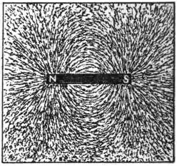 If a magnet is dipped into a mass of iron filings and withdrawn, filings cling to certain parts of the stone in moss-like tufts, other parts remaining bare. There are generally two regions where the tufts are thickest, and the attraction therefore greatest, and between them is a zone in which no attraction is evidenced. The regions of greatest attraction have received the name of poles, and the line joining them is called the axis of the magnet; the space around a magnet in which magnetic effects are exhibited is called the field of magnetic force, or the magnetic field.