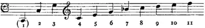 - ↑ For an explanation of the difference between theory and practice in the length of the tubes of wind instruments, see Victor Mahillon, “Le cor” (Les instruments de musique au musée du conservatoire royal de musique de Bruxelles, pt. ii. Brussels and London, 1907), pp. 27-29.
