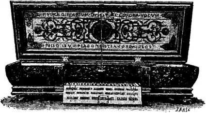| Fig. 4.—Manicordo (Clavichord) d’Eleonora di Montalvo, 1659; Kraus Museum, Florence. |