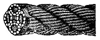 4. Hauling rope made of 6 strands, each of 10 wires covering 7 smaller ones.