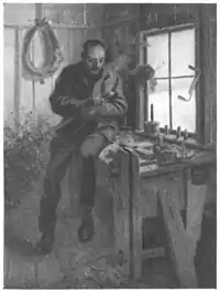 He git down at the sawmill-shop—