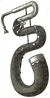 The serpent is considered to consist of three parts, (1) the mouthpiece, (2) the crook, or curved brass tube leading into (3) the wooden body, which is built up of several pieces held together by a leathern covering. It is usually said to have been invented by a canon of Auxerre, named Edmé Guillaume, in 1590. The story bears a somewhat suspicious resemblance to that of the discovery of the bassoon by a canon of Ferrara in the first half of the same century. But there can be no doubt that about this period clerical musicians employed bass reed and brass instruments for the accompaniment of ecclesiastical plainsong. Indeed Mersenne, who gives a remarkably good and complete account of the Serpent, notices that 'even when played by a boy it is sufficient to support the voices of twenty robust monks.' The Serpent d'Eglise is still a recognised functionary in French churches.