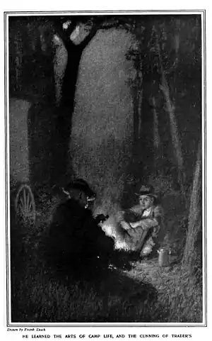 In those days of trailing dusty roads along the river courses of Ohio, Clint explored every drawer and locker in the wagon excepting two—one close behind the relic man's seat and the other underneath the wagon-box. These and their contents still remained mysteries. Early in their pilgrimage he won the goodwill of his employer by building a contrivance which served as a turtle-trap at night and a chicken-coop by day.