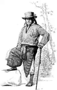 The Alcaldes were dressed in white trousers and round jackets of coarse coloured home-spun cloth, and they wore white or more often black straw hats with black velvet bands adorned with small black spangles.