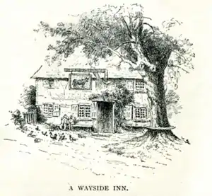 All advancement in England follows the track of the iron horse, and the people cluster round stations, and there they build their villages and towns. Back from these some miles, all is as silent and still as the wilds of Africa. You may wander for a whole forenoon and not meet a trap or see a human being, save people at work in the fields, and you need not marvel to see grass and even poppies growing in the middle of the road. There is everwhere here a sort of Sabbath peace and stillness; the country is apparently given up to the birds and the wildflowers, yet at many a turn of the road you may come upon some little cottage-home, with its porch and garden, and terclus of wondering rustic children, who wave their caps and shout as you pass. You will pass about twice a day too, a thoroughly English inn, suggestive of curds and cream, strawberries and roses, plain fare, October beer, a chintz-draped bedroom, with honeysuckle tapping at the little window, and to crown all, a pleasant landlady.