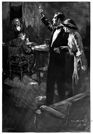 "Ladies and gentlemen," he said, "play is over for to-night. We are, without a doubt, the victims of an attempted robbery. The lights were turned out from the controlling switch by the lift man, who has disappeared. I will ask you to leave the room one by one; and, for all our sakes, I beg that any unknown to us will submit themselves to be searched."