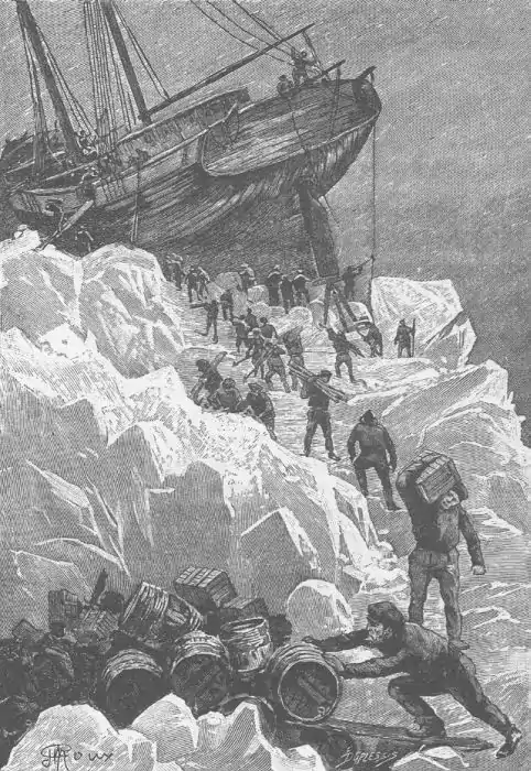 The crew were working in silence, whilst West was giving sharp short orders for manoeuvring through the channels, sometimes luffing in order to avoid a collision, now bearing away almost square before the wind. Nevertheless, in spite of a close watch, in spite of the skill of the sailors, in spite of the prompt execution of the manoeuvres, dangerous friction against the hull, which left long traces of the ridge of the icebergs, occurred. And, in truth, the bravest could not repress a feeling of terror when thinking that the planking might have given way and the sea have invaded us.