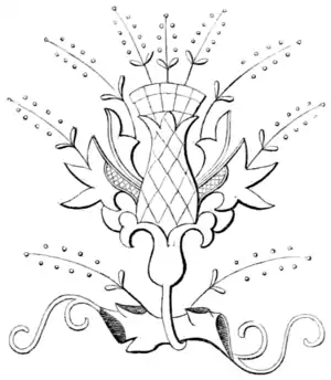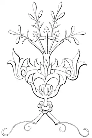 The introduction of spangles (pailletes) took place at an early period. They are often seen representing tendrils, springing from the points of leaves, and are very rarely found sewn upon the device itself.