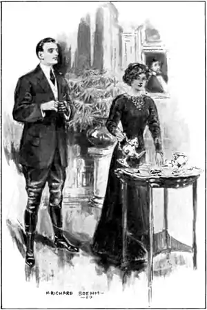 "`If it's for me, plenty of tea, very little cream, and three lumps of sugar,' he cried in a gay, ringing voice" |