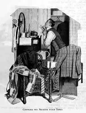 SPEAKING in a most significant voice, I wish to say that Mortimer had an appointment that afternoon to take Miss Josephine a spin in The Hornet, his forty-horse-power car. And (in a tone that fairly drips with unction) I will add that Mortimer made the following mechanical provisions to insure the proper running of the car—viz., he shaved himself for the second time that day, anointed his head with an exquisite eau de cologne, delicately dusted his brick-red features with talcum powder, and changed his necktie four times. Thus equipped and accoutred, he climbed into The Hornet, kicked at the clutch, and madly chug-a-chug-chugged to the house where Josephine was staying with her aunt. For though The Hornet had been his only love for eighteen months, Miss Josephine had come between them at last and had weaned his affections away.