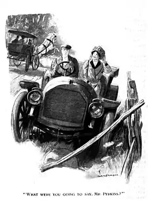 "Josephine," said Mortimer, his arm stealing behind her (as it couldn't—in the car), "I meant to ask you before, but I couldn't (in the car). How would you like to be Mrs. Perkins?"