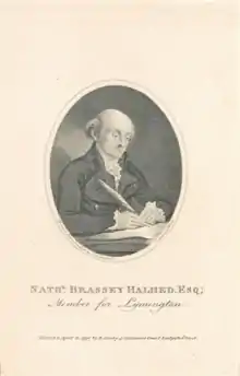 - "Halhed, Nathaniel Brassey," in Alumni Oxonienses: the Members of the University of Oxford, 1715-1886, by Joseph Foster, London: Parker and Co. (1888–1892) in 4 vols.