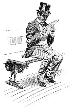 Whereupon Mr Solomons stepped forward and politely handed me a folded paper, and, observing that he thought there was no need to protract the interview, he lifted his hat and went off with the ladies, leaving myself upon a bench endeavouring to get the sense of the official document into my baffled and bewildered nob.