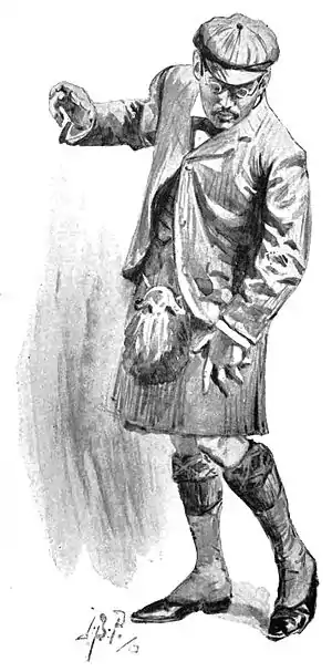 But on arrival at Mr Smartle's office in Chancery Lane, we were disappointed to be informed, by a small, juvenile clerk, that he was absent at Wimbledon on urgent professional affairs, and his return was the unknown quantity. However, after waiting till close upon the hour of tiffin, he unexpectedly turned up in a suit of knickerbockers, carrying a long, narrow bag full of metal-headed rods, and although rather adolescent than senile in physical appearance I was vastly impressed by the offhanded cocksurety of his manner.
