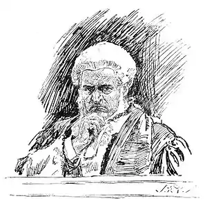 - [Here poor old Jab bundles off to the witness-box, and takes some outlandish oath or other with immense gusto, after which he starts telling the Jury a long rambling rigmarole, and is awfully riled when the old Judge pulls him up, which he does about every other minute. This is the sort of thing that goes on:—