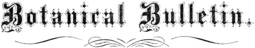 Our Object.—With a good deal of diffidence we present this first copy of the Bulletin to our botanical friends. When the science of Natural History in all its departments has so many able journals devoted to its advancement, it would appear like presumption in us to make what may seem a useless addition to the list. Our aim at present, however, is by no means so lofty, but is simply to afford a convenient and rapid means of communication among botanists. Our little sheet is intended to be devoted to botanical discoveries and observations, and it is hoped that botanists will make use of it. The New England States and New York are well supplied with such means of communication, but we do not doubt that there are many interesting finds and notes west of those States that are only waiting some such opportunity as this to be presented to the botanical world. We do not wish, therefore, to be considered as setting up ourselves against our Eastern friends, but rather as supplementing their good work and aiding them, as far as is in our power, in the discovery of truth, after which we are all striving. We will assure our friends, who desire to make use of this sheet, of a wide circulation among botanists of such notes as they may send us. We shall welcome notes from all botanists and urge them to send us at once such articles as they wish published that they may appear in as early a number as possible. The Bulletin will be published every month and will be enlarged as necessity may demand. Hoping botanists will heartily approve of our undertaking and show appreciation of our efforts by a contribution of notes, we leave the Bulletin in their hands.—Editor.