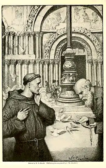 "I saw that he could not be contented with my answer; and then this other idea came to him—the idea that is, I think, the blessed hope of youth that this thing being wrong, he, Leo, must protest against it, must resist it! Surely, if money can do wonders, we who set ourselves to work the will of God should have more control of this wonder-working power? He fretted against his rule. He did not permit himself to believe that our blessed father, Saint Francis, was wrong, but it was a hardship for him to refuse alms from our kindly visitors. He thought the beggars' rags would be made whole by gold; he wanted to give them more than bread, he wanted, poverino! to buy happiness for the whole world."