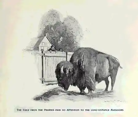 "Now you don't fight a bull same's you do a boy; you have to be a matador and things like that, an' go into the ring and bow and wave your scarlet cloak; and then the bull he dashes at you; and that 'll be all right with grandfather's buffalo, cause there's bars in front of his pen—great, big, strong bars what he can't break down."