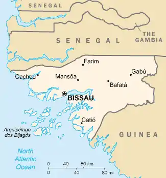 | Ports and harbors: | Bissau, Buba, Cacheu, Farim |