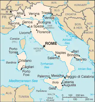 | Location: | Southern Europe, a peninsula extending into the central Mediterranean Sea, northeast of Tunisia |